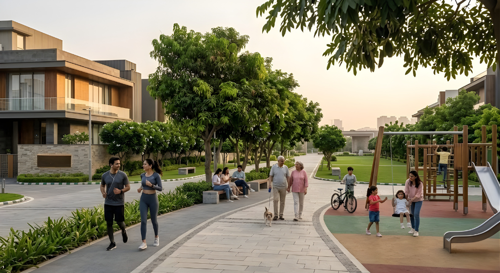 These plots are part of a well‑planned gated community where homeowners can design and build their own luxury residence. With permission for stilt + 4 floor construction, buyers can create spacious independent homes in a modern residential environment surrounded by green landscapes and premium developments.